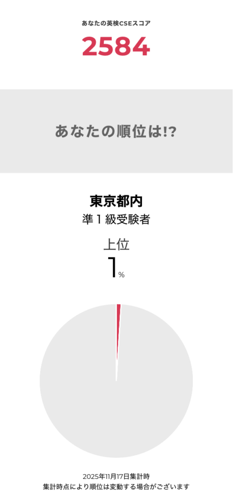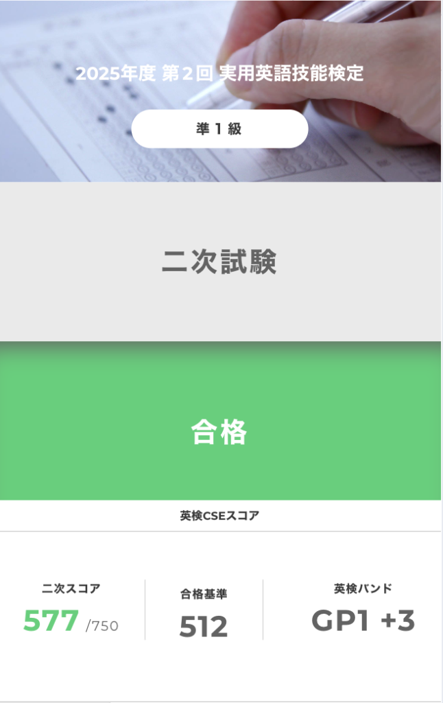 ではでは、同じ回に英検を受験されたみなさん、お疲れさまでした!