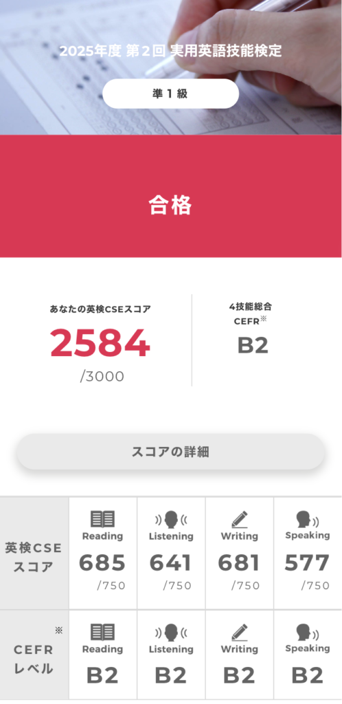 先日受験した英検準1級の二次試験(面接試験)と全体の結果が出ました!