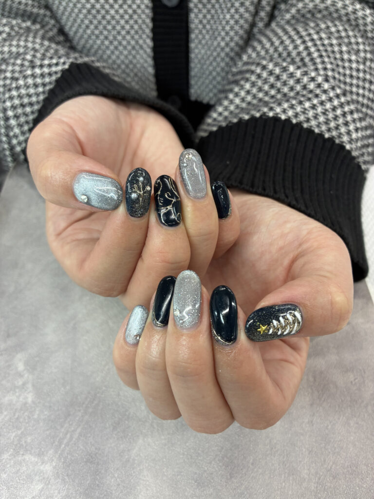 12月:静かな冬の夜…エレガントなクリスマスネイル🎄
