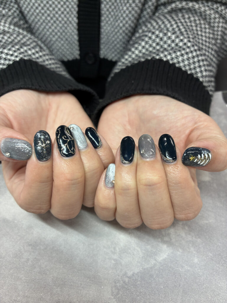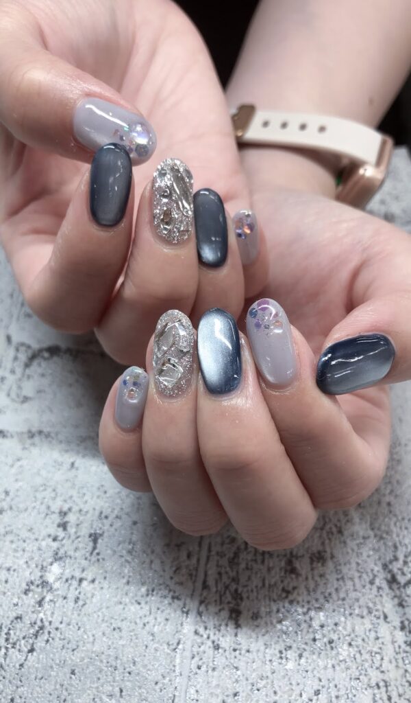 ネイビー×シルバーで、冬の雪の夜の雰囲気が出ている気がします❄️
