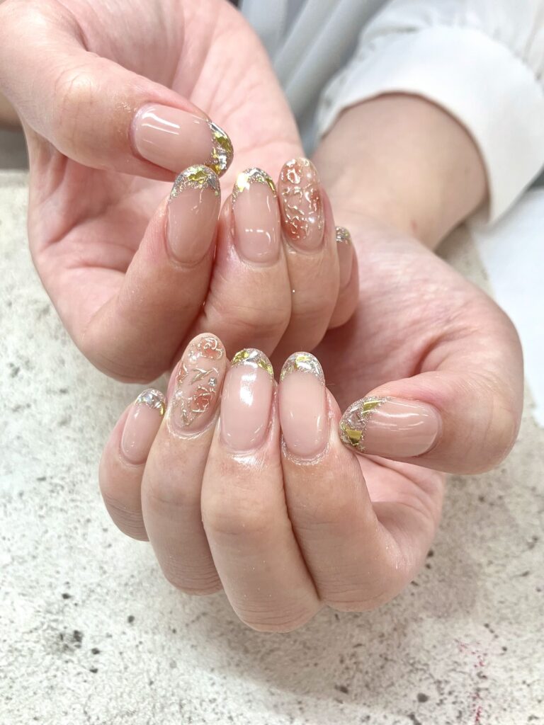 主張しすぎず、かといって控えめになりすぎない、ガラスフレンチと薔薇のデザインにしていただきました🌹