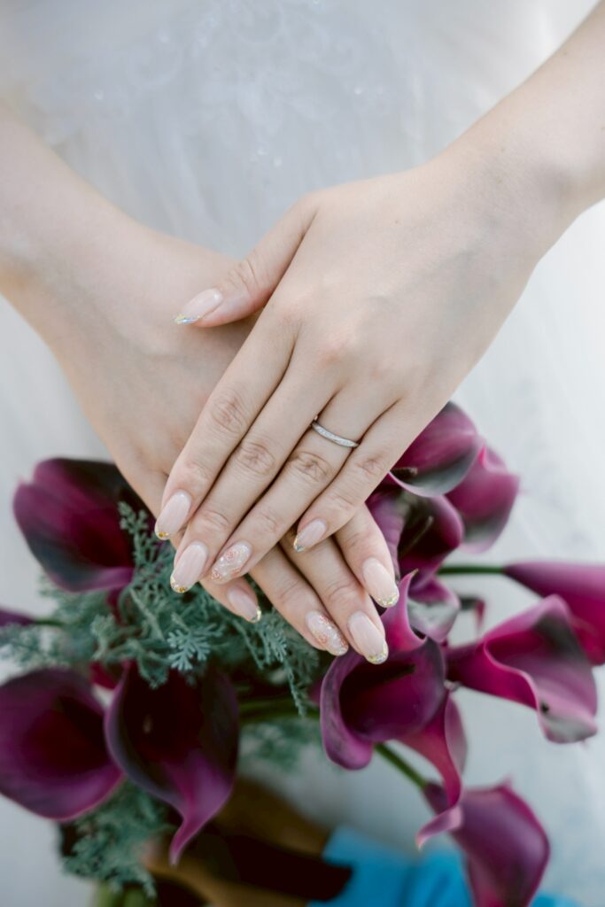 9月:ウェディングフォトを引き立てる、ガラスフレンチ×薔薇ネイル🪞