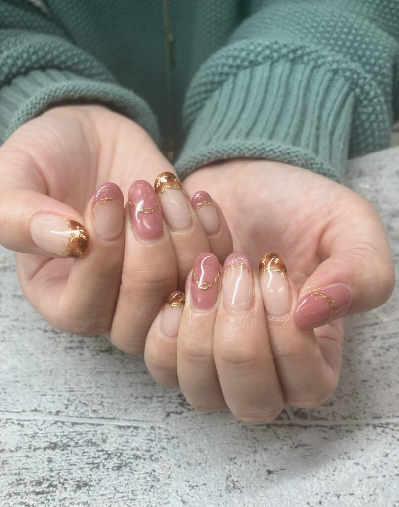 11月:秋っぽくて大人っぽい♩ピンク×べっこうフレンチネイル🍂