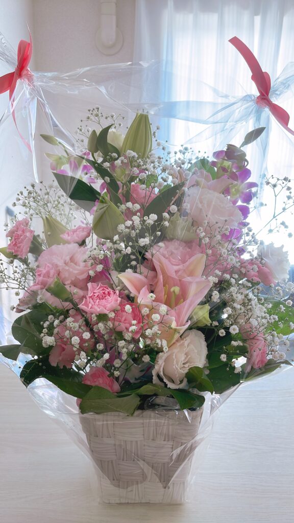 初めての結婚記念日を迎え、夫がフラワーアレンジメントをプレゼントしてくれました。意外。